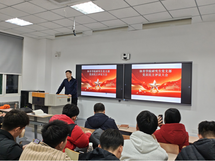132026/03为持续推动学习贯彻党的创新理论深化内化转化,全面落实党支部召开组织生活会的相关要求,切实锤炼研究生党员党性修养,增强党支部凝聚力与战斗力,3月13日,体育学院研究生党支部召开年度组织生活会。会议由党支部书记王兵主持,学院党委委员、副院长文安到会指导,党支部全体党员积极参与。党支部严格按照上级党组织部署要求,扎实开展会前筹备工作。通过“集中学+自主学”双轨模式组织党员系统学习党的创新理论及党章党规,...