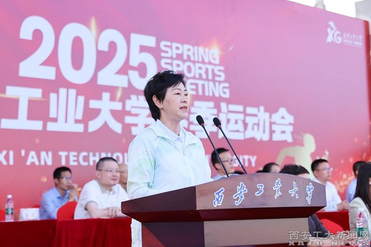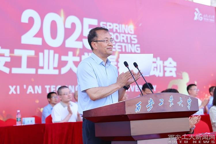 姚尧致开幕词,代表学校对运动会的开幕表示热烈祝贺,向所有运动员、教练员、裁判员及工作人员表示衷心感谢和亲切问候。他指出,体育铸魂强魄,运动固本培元。体育教育是国家体育事业的重要组成部分,也是学校人才培养的重要方面。他强调,今年的运动会,是在学校建校70周年之际召开的一场体育盛会。这场盛会,不仅是全体师生运动水平的精彩角逐、精神风貌的集中展示,也是学校以兵工精神铸魂,以红色基因育人的生动课堂。希望各代表队和全体运动员能够发扬奥林匹克精神,展现良好体育道德风尚,比出风格、赛出水平;希望全体师生能够在拼搏和竞技中传承兵工人永不言弃的坚韧,在团结和协作中彰显青年人勇立潮头的担当,以西工七十载薪火相传的历史加速度奔赴教育强国建设的新征途。